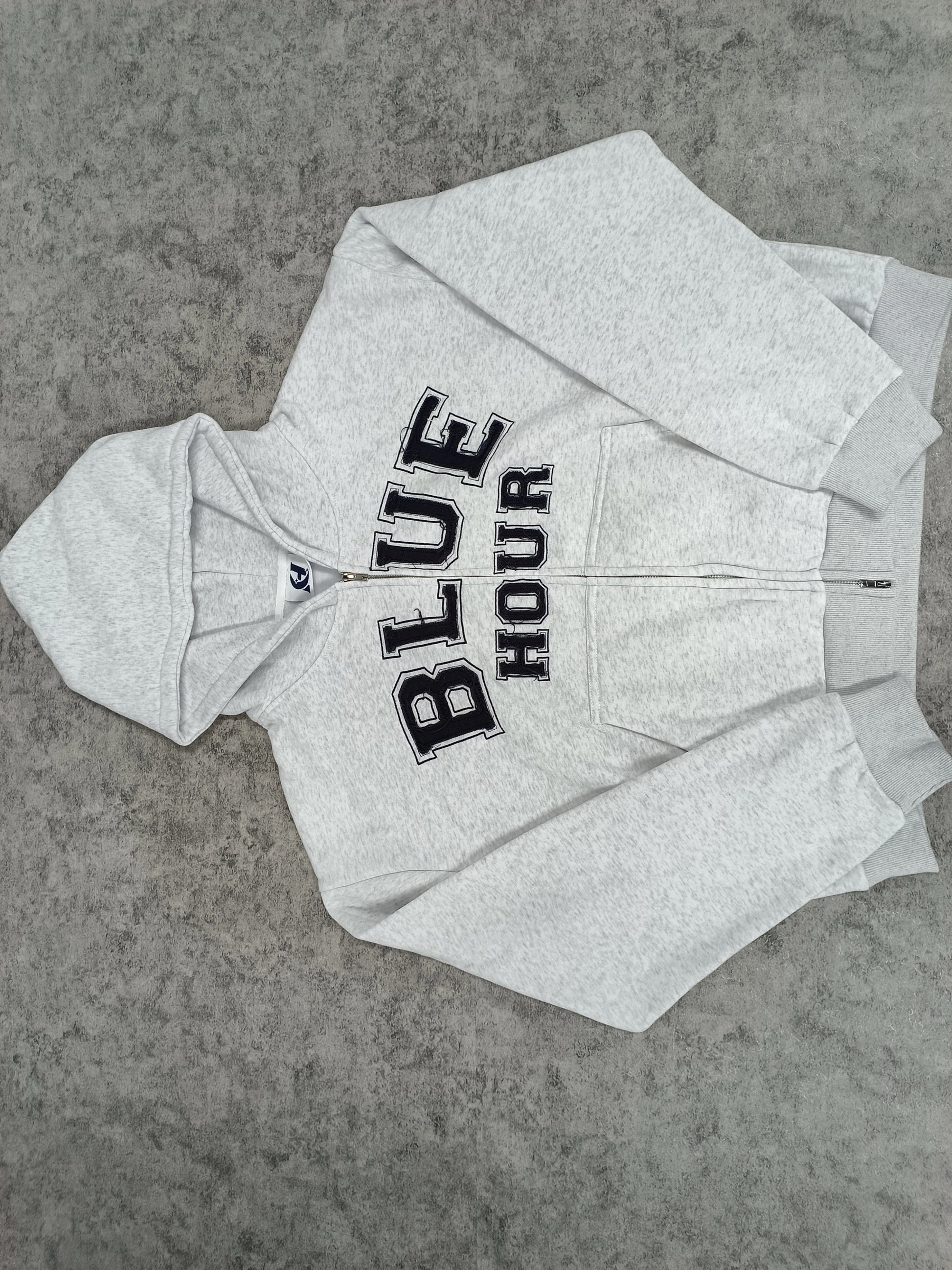 Slightly oversized Distressed logo blue hour zip up hoodie