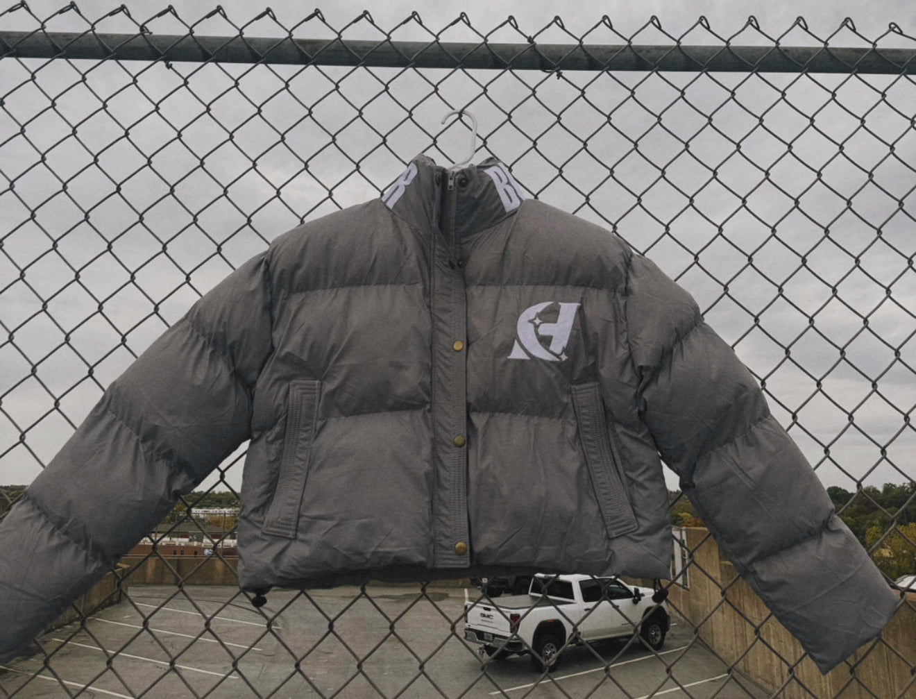 Blue hour women’s cropped puffer with detachable hood & adjuster strings at the bottom to adjust how cropped you want it to be